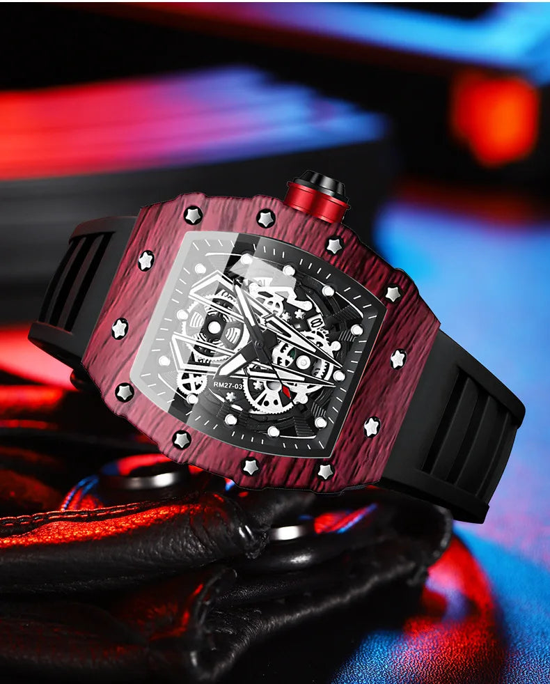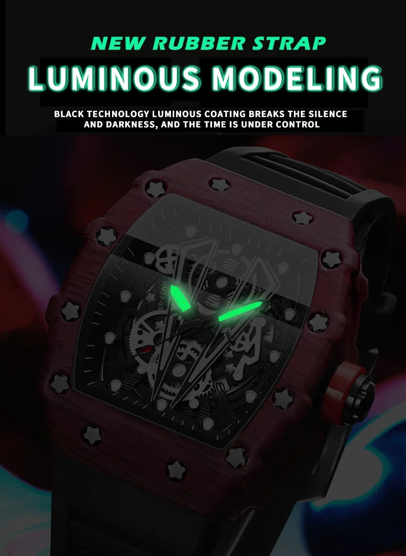 BINBOND Brand Men Watch Domineering Barrel Watch Curved Mirror Hollow Surface Sports Men Watch Silicone Quartz Wristwatch B8577