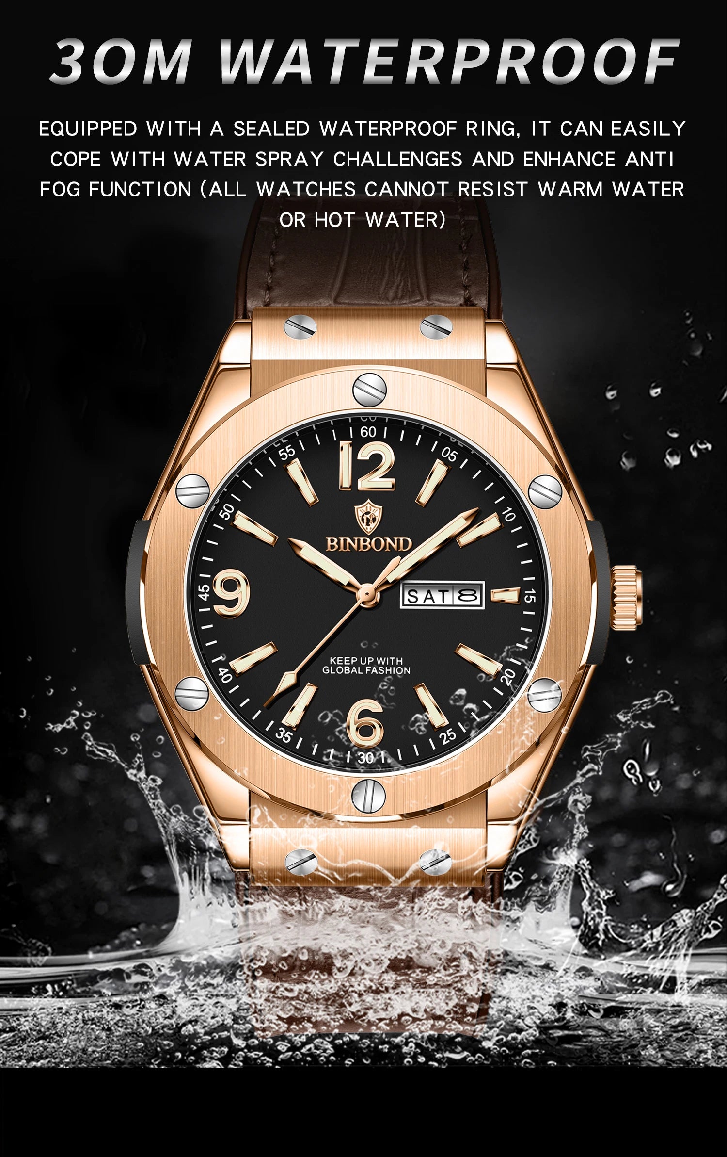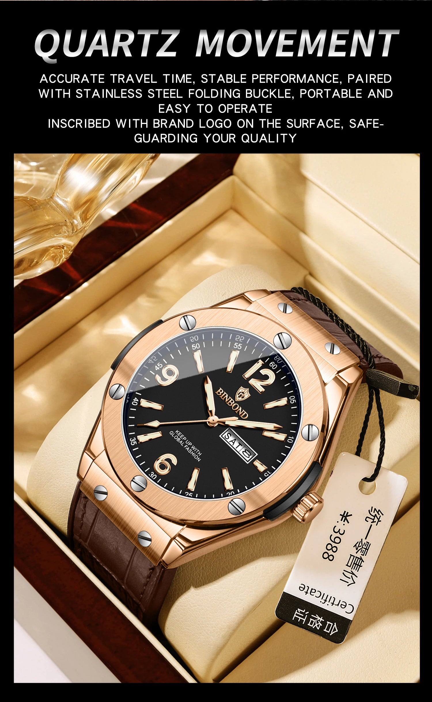 BINBOND New 225 Fashion Men's Quartz Watch Waterproof Luminous Calendar Versatile Casual Men's Quartz Watch 2025