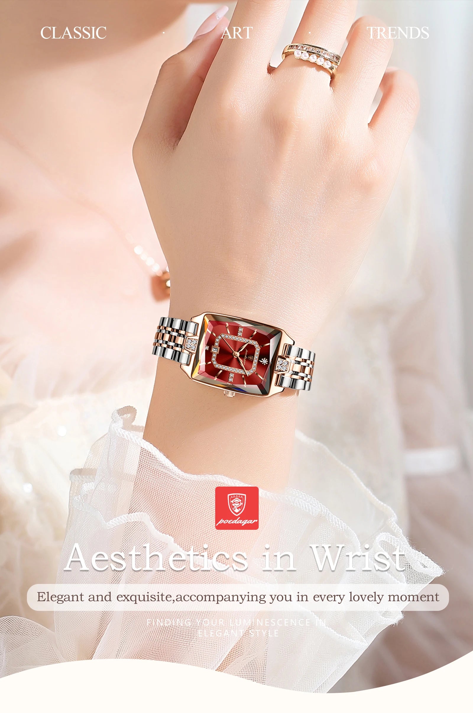 POEDAGAR Luxury Watch For Woman Elegant Waterproof Calendar Ladies Watch Rectangle Stainless Steel Quartz Women's Watches Female