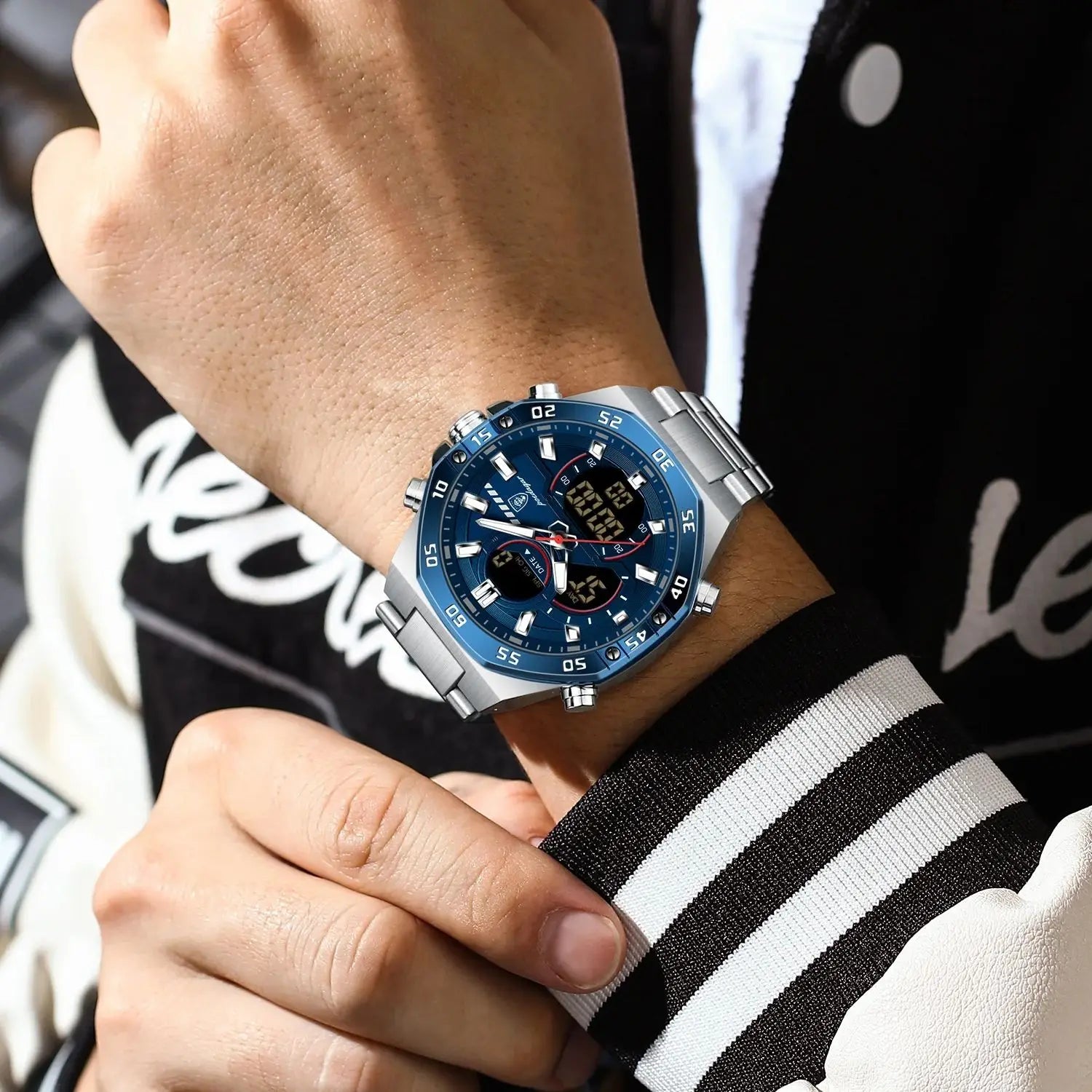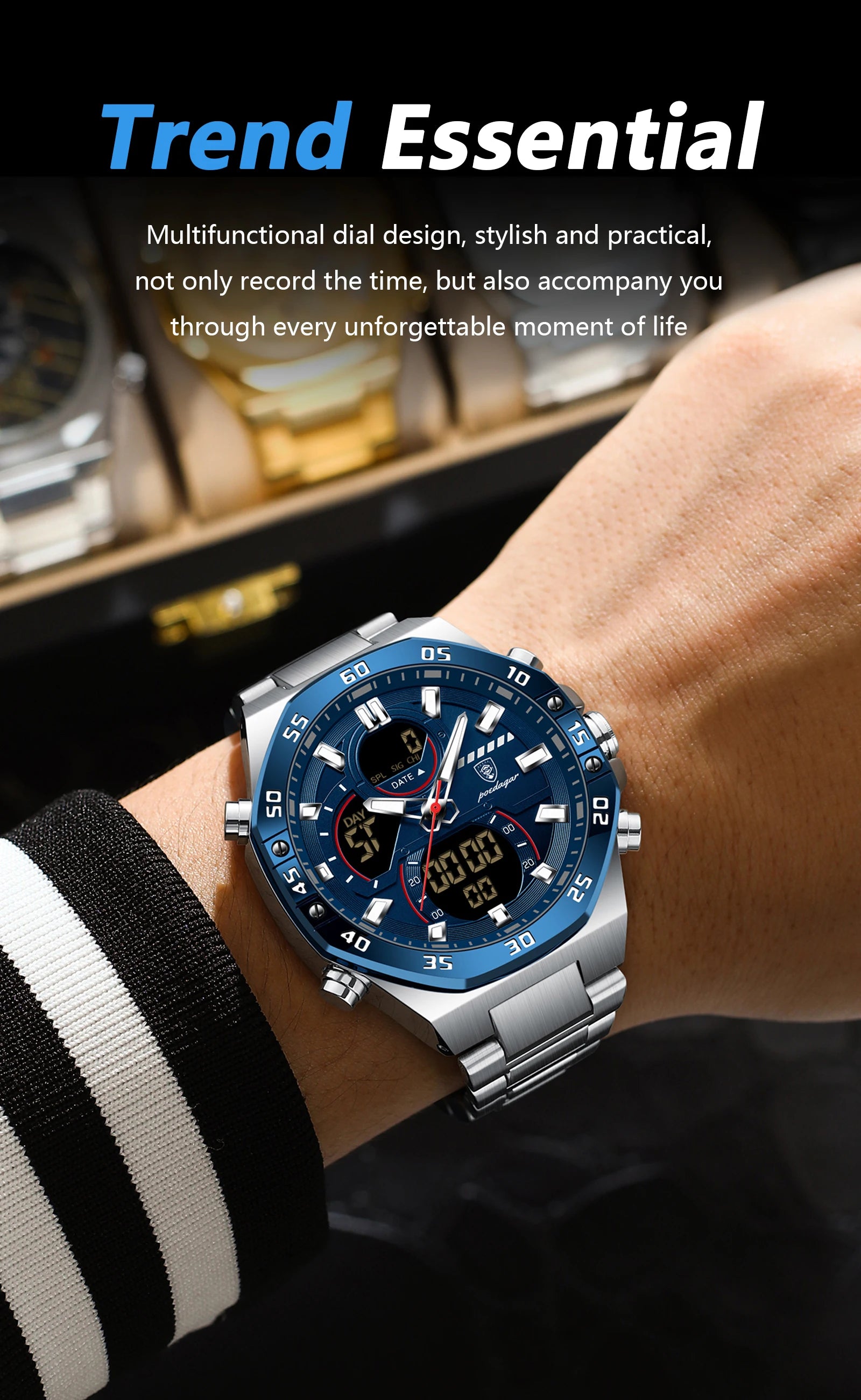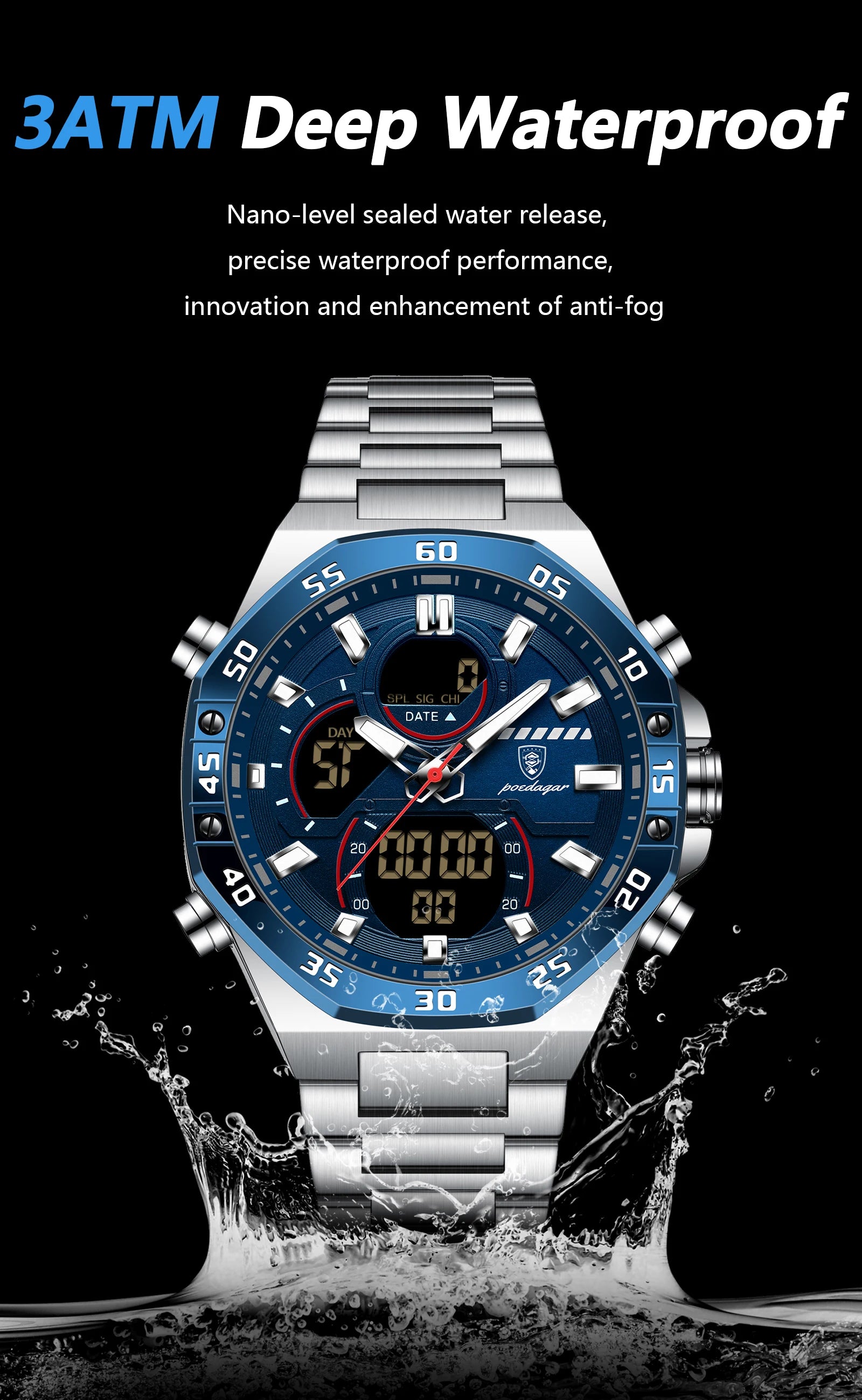 POEDAGAR Original Sports Men Wristwatch Week Date Waterproof LED Quartz Man Watch Stainless Steel Military Digital Men's Watches