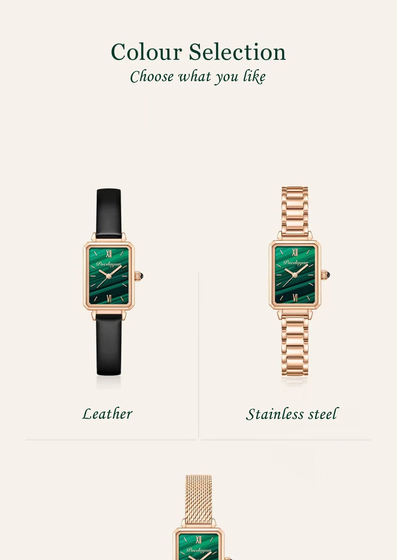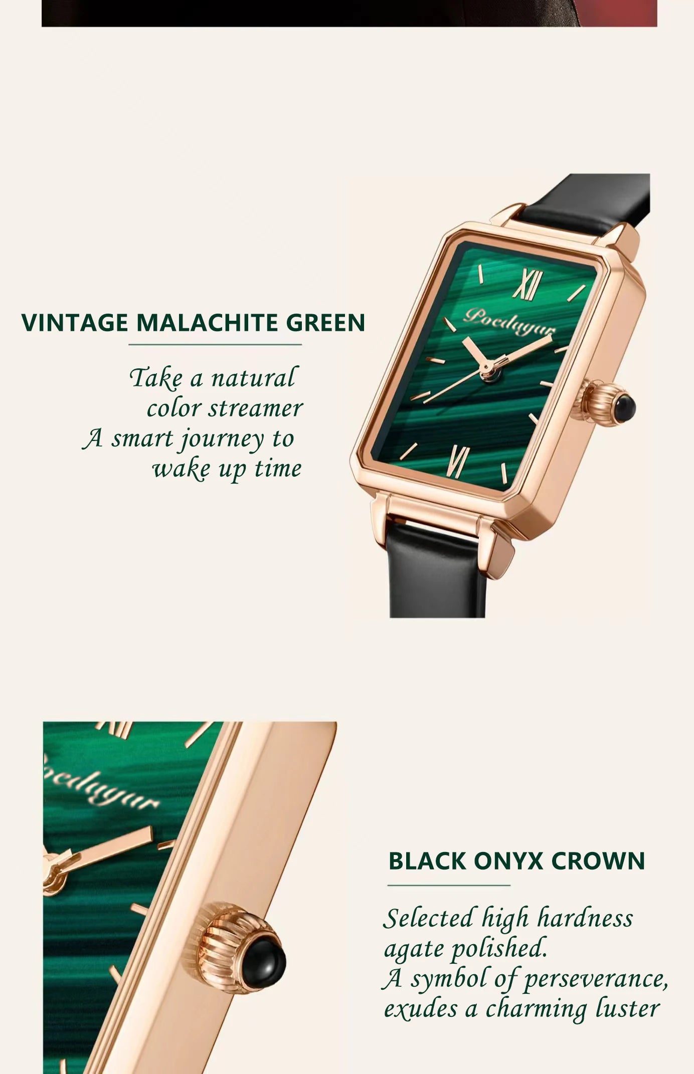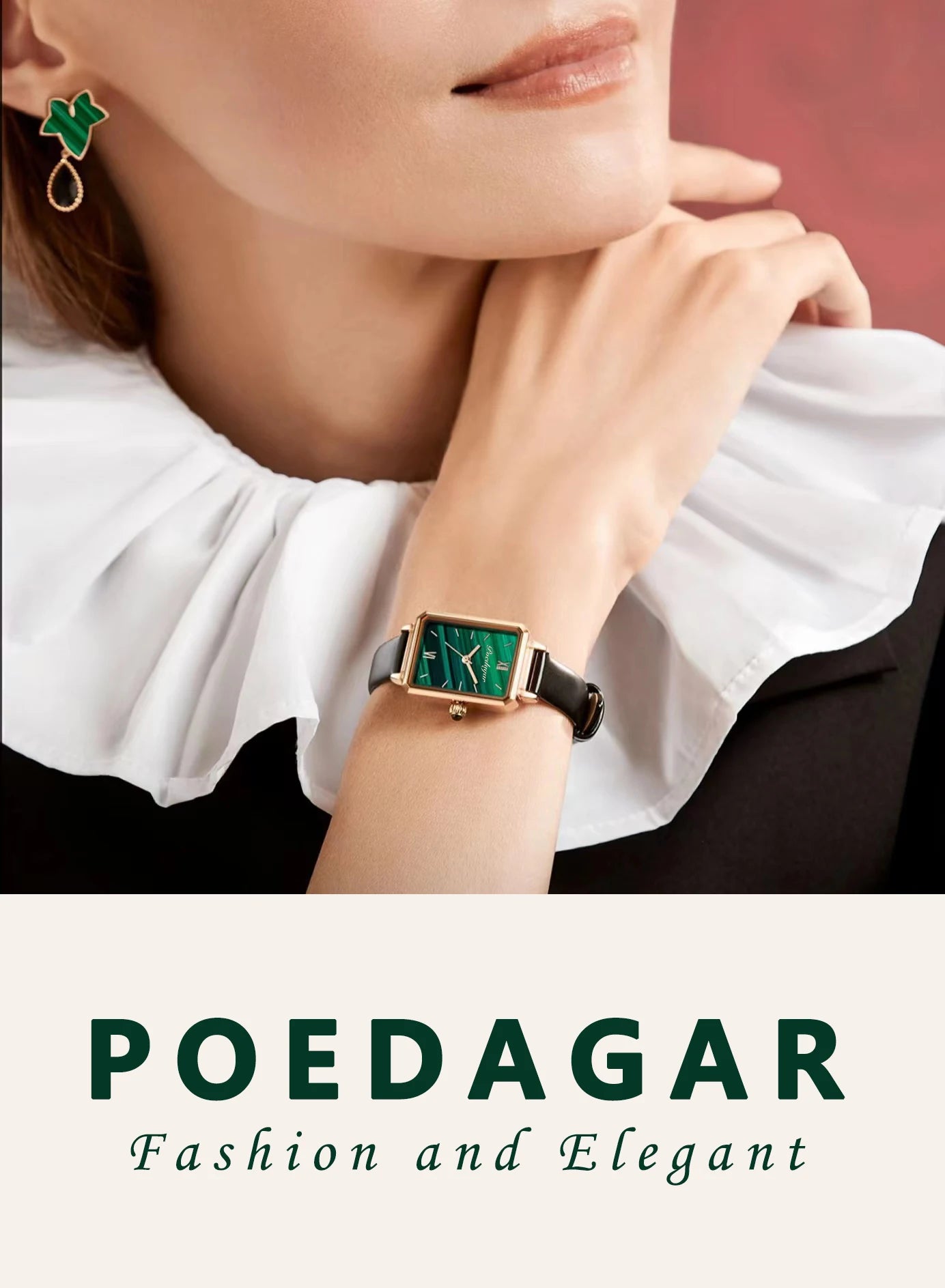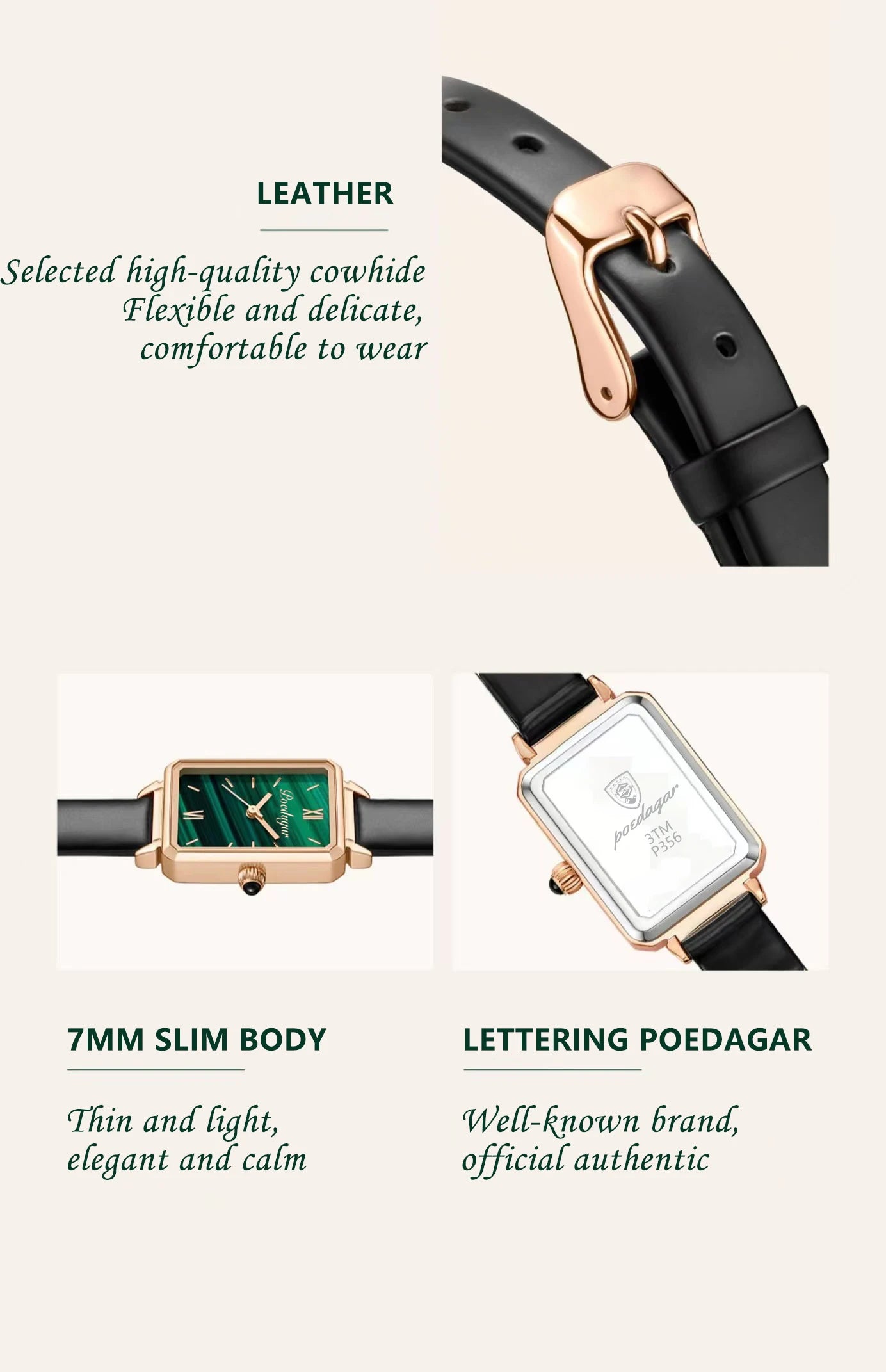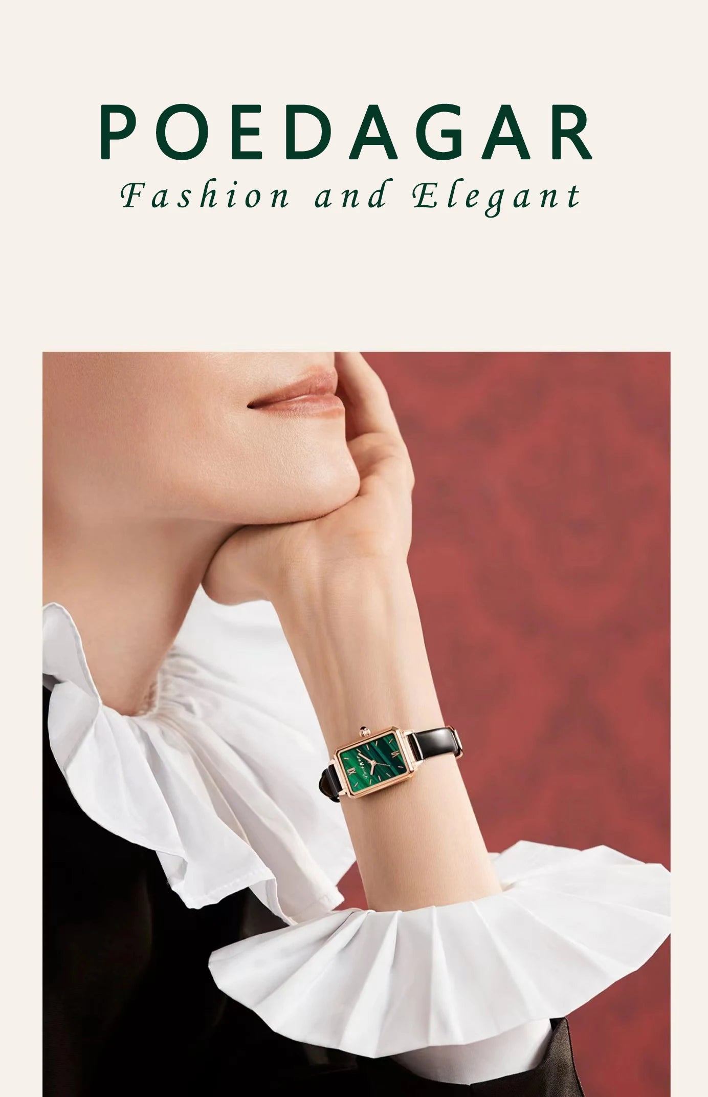 POEDAGAR Women Watches Fashion Green Square Leather Quartz Watch Top Brand Luxury Waterproof Ladies Wristwatch Girlfriend Gift