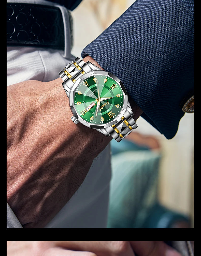 POSHI Men's Watch Date Week Fashion Watch Men Original Waterproof Non-mechanical Luminous Dual Calendar Quartz Wristwatch